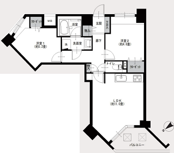 専有面積 | 56.29m2 | バルコニー面積 | 5.44m2 |
