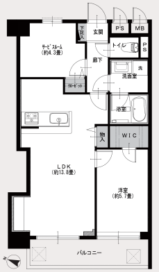 | 専有面積 | 55.10m2 | バルコニー面積 | 7.03m2 |
