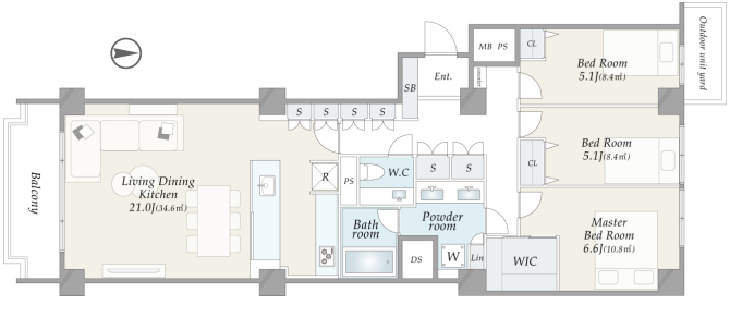 | 専有面積 | 93.38m2 | バルコニー面積 | 6.81m2 |