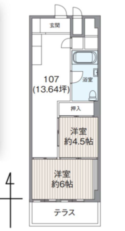 | 専有面積 | 45.09m2 | バルコニー面積 | |