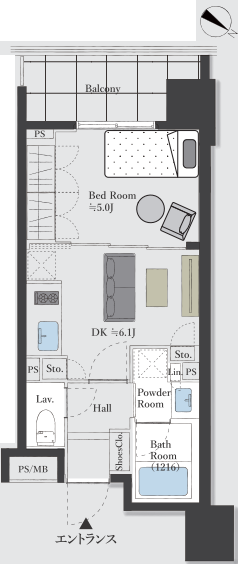 | 専有面積 | 30.00m2 | バルコニー面積 | 6.25m2 |